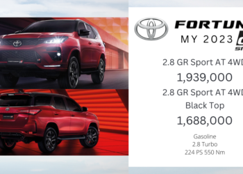 Read moreDetailsราคาอย่างเป็นทางการ 2.8 GR Sport AT 4WD สีดำ Attitude Black Mica : 1,939,000 บาท 2.8 GR Sport AT 4WD (Black Top) สีแดง...
