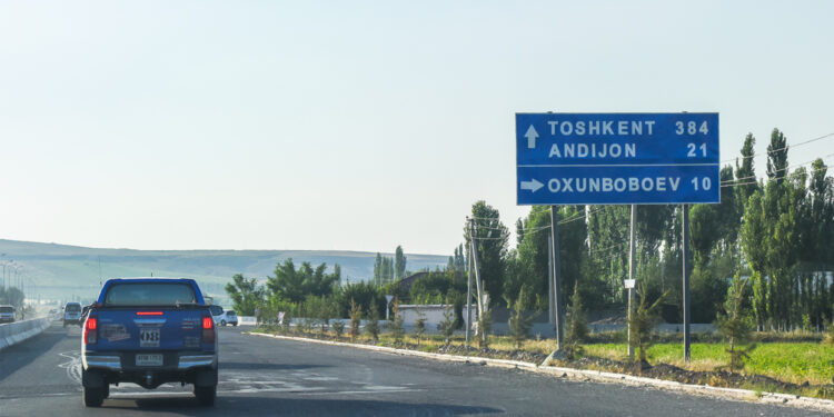 ทุกคนขึ้นรถ ปัญหาทุกอย่างเคลียร์ได้ การเดินทางเข้าเมืองทัสเค้นท์ก็เริ่มขึ้น ด้วยถนนหินเกล็ดที่ยังสร้างไม่เสร็จ ขบวนรถวิ่งผ่านไปก็ฝุ่นคลุ้งตลบเข้าบ้านเข้าช่องแถวนั้น ไม่รู้ว่าจะโดนด่าหนักมากน้อยกี่กิโลกรัมขนาดไหน เมื่อขึ้นถนนลาดยางได้แล้วเช็คดูระยะทาง กว่าจะถึงที่พักวันนี้ก็อีก 300 กม.จึงชวนกันแวะร้านอาหารพื้นเมืองของชาวอุซเบก่อน เพราะบางคนมื้อกลางวันก็ไม่ได้ทานอะไรเลย และถือเป็นมื้อเย็นไปในตัวด้วย