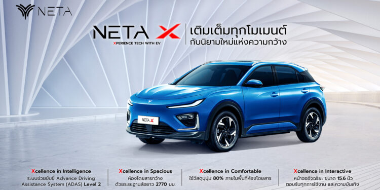 NETA X ได้รับการออกแบบภายใต้แนวคิด และสโลแกน “เติมเต็มทุกโมเมนต์ กับนิยามใหม่ของความกว้าง” ชูจุดเด่นด้าน พื้นที่ภายในห้องโดยสารกว้างนั่งสบาย พร้อมเทคโนโลยีล้ำสมัย ให้ความมั่นใจในการขับขี่ด้วยระบบช่วยเหลือผู้ขับขี่ ADAS ระดับ 2.0 รวมถึงการติดตั้งระบบความปลอดภัยที่ครบครัน โดยมาพร้อมระบบส่งกำลังจากมอเตอร์ไฟฟ้าประสิทธิภาพสูง กำลังสูงสุด 120 กิโลวัตต์ หรือ 163 แรงม้า ให้อัตราเร่งจาก 0 ถึง 100 กิโลเมตร/ชั่วโมง ในเวลาเพียง 9.5 วินาที