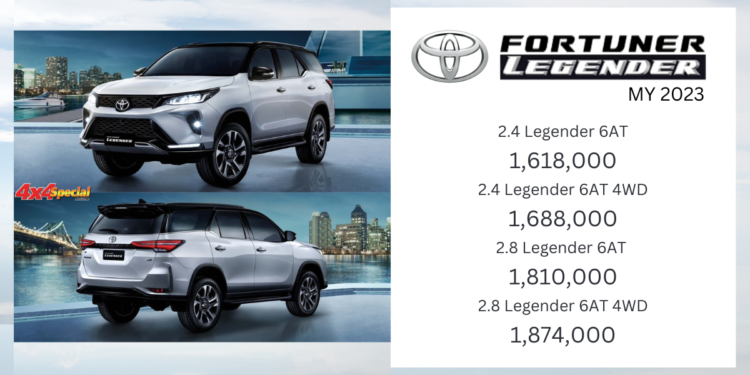 Toyota Fortuner LEGENDER (MY2023) : 1,618,000 – 1,874,000 บาท จอ 9 นิ้ว รองรับ Wireless Apple CarPlay